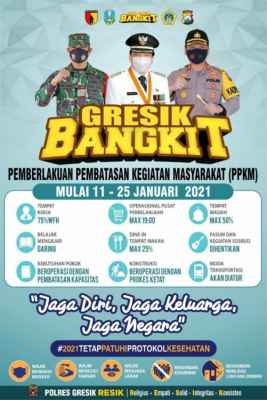 GRESIK- Polres Gresik telah melakukan 27.657 kali kegiatan peningkatan operasi yustisi pemberlakuan pembatasan kegiatan masyarakat (PPKM) di Kota Pudak, Jumat (15/1/2021).
