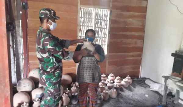 Anggota Satgas TMMD, Serda Samsuri, mengunjungi salah satu potensi kerajinan Gerabah milik Ibu Rini (45) di Desa Jatimulyo, Kecamatan Tambakrejo, Kabupaten Bojonegoro sebagai salah satu desa sasaran program TMMD ke- 110 tahun ini oleh Kodim yang bersinergi dengan Pemkab Bojonegoro.