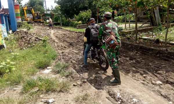 “Di sela sela tinjauan ada warga yang mengalami kerusakan motor, kita bantu mendorong motornya,” kata Serda Thatit