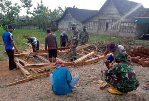 Anggota Satgas TMMD Kodim 0813 Bojonegoro Sertu Maskun dan beberapa personil nampak semangat dalam mendirikan bangunan poskamling. “Pendirian bangunan poskamling ini di RT 12 RW 06 Dusun Kramanan Desa Jatimulyo,” ujarnya, Minggu (21/2/2021).