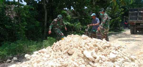 Bojonegoro – Anggota Satgas TNI Manunggal Membangun Desa (TMMD) Ke- 110 Kodim 0813 Bojonegoro membatu warga buatkan jalan. Pembuatan jalan ini dikarenakan jalanya ketutup oleh material di Desa Ngrancang Kecamatan Tambakrejo Kabupaten Bojonegoro.