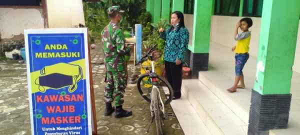 Sertu Agus, mendatangi SD Negeri Jatimulyo ini menyampaikan banyak hal terkait program TMMD oleh Kodim Bojonegoro kepada para Guru, dan memberikan masukan serta semangat meskipun belajar Daring.