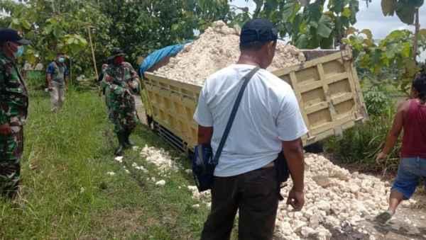 BOJONEGORO – Banyaknya truk Pengangkut material dari adanya kegiatan pembangunan fisik TMMD (TNI Manunggal Membangun Desa) ke 110 di Desa Ngrancang, Kecamatan Tambakrejo, Kabupaten Bojonegoro, Jawa Timur, dan karena kondisi rusaknya jalan yang dilintasi truk berakibat ada truk pengangkut material yang terjerembab dijalan yang rusak.
