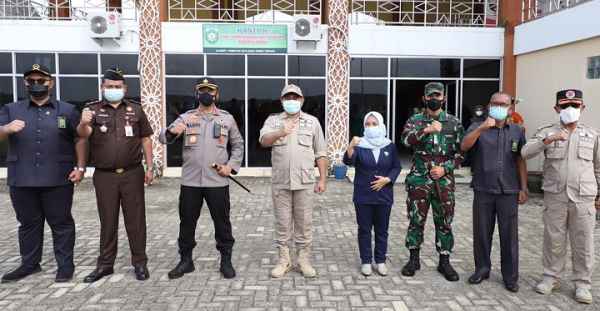 Tampak Hadir Dalam giat apel siaga dan gelar peralatan kesiagaan penanganan Karhutla, Kapolres Bungo, AKBP. M. Lutfi beserta personil, Bupati Bungo, Dandim 0416/Bute dan unsur Forkopimda di lapangan MTQ Baru.