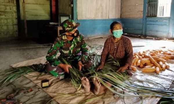 BOJONEGORO – Anggota Satgas TMMD mengunjungi Rantiyem (52) warga Dusun Pandan, Desa Jatimulyo RT 06 RW 03, Kecamatan Tambakrejo, Kabupaten Bojonegoro, untuk memberikan semangat dan dukungan atas pekerjaan yang dilakukan yaitu sebagai pengerajin tikar pandan, atau tikar tradisional.