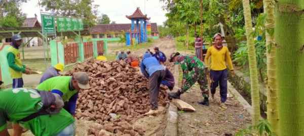 BOJONEGORO – Sertu Wawan seorang anggota Satgas TMMD (TNI Manunggal Membangun Desa) ke 110 di Desa Ngrancang, Kecamatan Tambakrejo, Kabupaten Bojonegoro, Jawa Timur menjadi perhatian warga yang membantu kegiatan Pemerataan batu untuk pembangunan jalan.