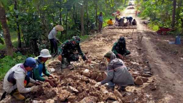 “Nanti jalan sepanjang 2.800 meter ini akan di aspal, jadi harus diperkuat dengan makadam dulu,” ungkap Serda Lajahidin.