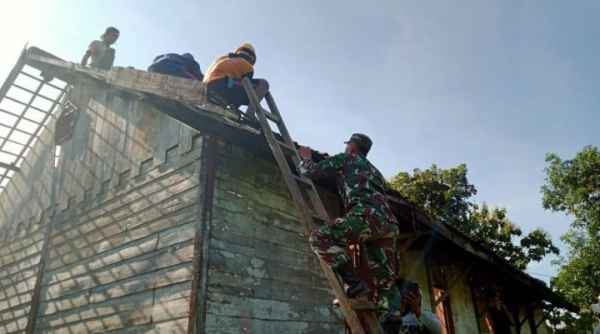 Karena akan segera dibangun, warga masyarakat setempat bergotong-royong bersama anggota Satgas TMMD Kodim Bojonegoro membongkar bangunan lama ini.
