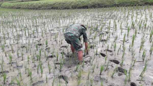 Hal itu seperti yang dilakukan oleh Serda Dwi Permono Sudi yang membantu menyulam padi di sawahnya Ngadimin (68) warga lokasi TMMD 110 yakni di Dusun Ngrambah Desa Ngrancang, Kecamatan Tambakrejo, Kabupaten Bojonegoro.