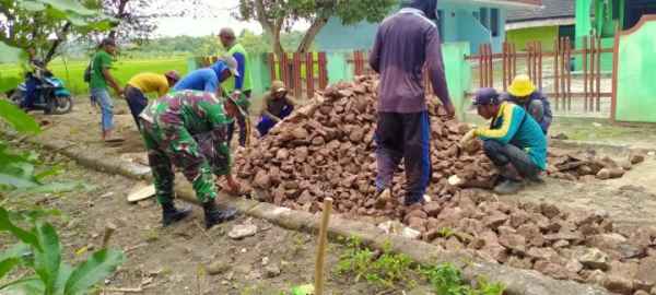 Bojonegoro – Warga masyarakat Jatimulyo, bersama Anggota satgas TMMD ke 110 kodim 0813 Bojonegoro, Sertu Yasin melaksanakan pemerataan batu sebelum dilaksanakan pengaspalan jalan poros Desa Jagimulyo, Kecamatan Tambakrejo, Kabupaten Bojonegoro.