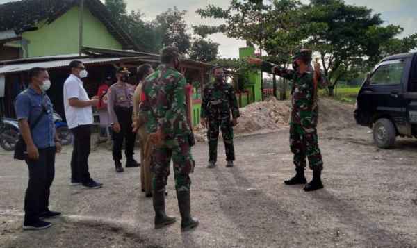 Dandim 0813/Bojonegoro Letkol Inf Bambang Hariyanto bersama dengan Camat Tambakrejo Bapak Hari Cristianto, Kepala Desa Ngrancang Bapak Sudadi, Pasi Ter Kodim 0813/Bojonegoro, Kapolsek Tambakrejo, meninjau pelaksanaan TMMD 110, Kamis (04/03/2021).