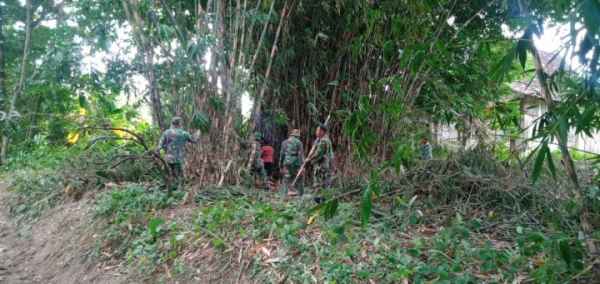 Dia melanjutkan, pengambilan bambu pemberian dari warga tersebut dilakukan secara bergotong-royong antara personel TMMD ke-110 dan masyarakat.