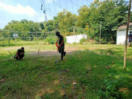 Agar tampak bersih dan rapi, selama pelaksanaan kegiatan program TMMD ke-110 di Desa Jatimulyo, Kecamatan Tambakrejo, Kabupaten Bojonegeoro, personil Satgas TMMD melakukan bakti sosial membersihkan taman, Kamis(4/3/2021).