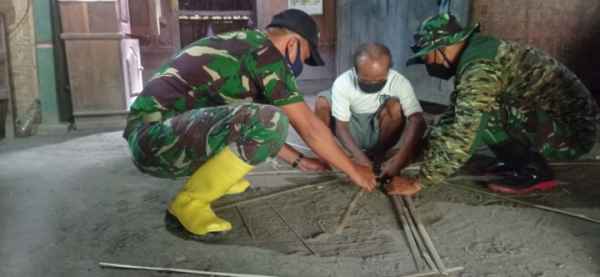 Anggota Satgas TNI Manunggal Membangun Desa (TMMD) ke-110 tahun 2021 itu membantu Bapak Sarwo, RT 05 RW 03, Desa Jatimulyo.