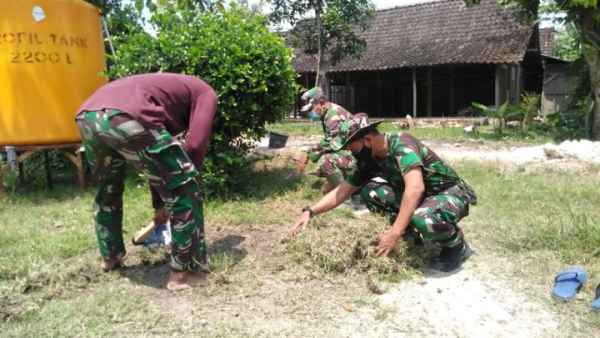Agar Bersih dan Rapi, Satgas TMMD 110 Bojonegoro Bersihkan Rumput
