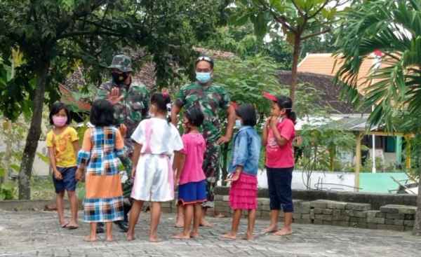 Hal tersebut, nampak saat Koptu Kasturi bersama Serda Maskun menemui sejumlah anak-anak yang bermain di halaman rumah, Sabtu (6/3/21).