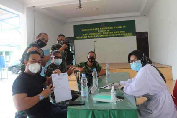 JAMBI- Pemberian vaksinasi untuk memutuskan penularan virus Covid 19 sekaligus upaya pemulihan perekonomian. Kegiatan vaksinasi dilaksanakan di Makodim 0415/BTH, pada Rabu (10/03/2021).
