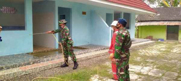 Kali ini, Danramil Tambakrejo Kapten Inf Jamari ikut terjun langsung ke lokasi TMMD di Desa Ngrancang. Ia ikut melakukan sterilisasi ruang isolasi, Senin (8/3/2021).