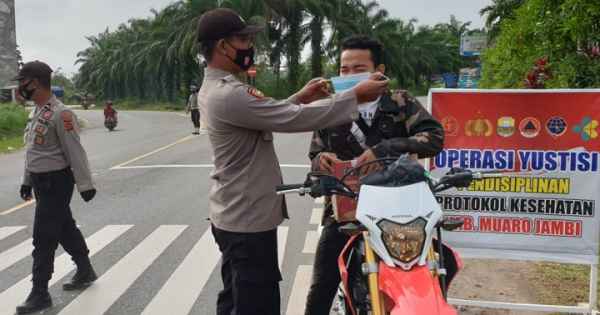 Pemberian masker dilakukan oleh Polsek Jaluko melaksankan Operasi Yustisi Perbup No. 51 tahun 2020 dalam rangka mencegah penyebaran Covid-19 dengan motto “GERAKAN POLRES MUARO JAMBI PEDULI MASKER DAN COVID 19.