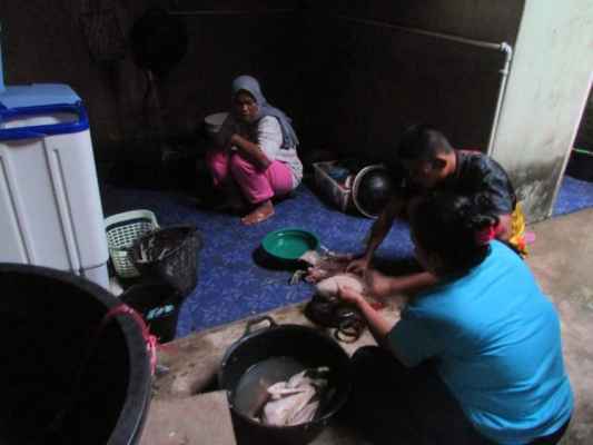 Pantaun di lapangan, dalam proses pembuatan pembuatan bebek goreng, tampak Satgas TMMD ke 110 Kodim 0415/Batanghari itu membantu orang tua asuhnya.