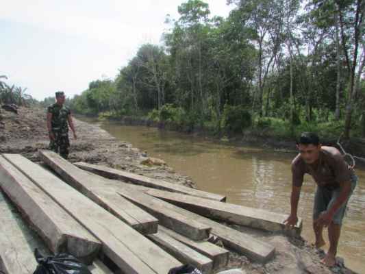 Sementara itu, Babinsa Serda Sondriadi, menjelaskan, untuk dibuatkan pondasi di jembatan titik 3, diperlukan 32 batang kayu yang harus dibawa.