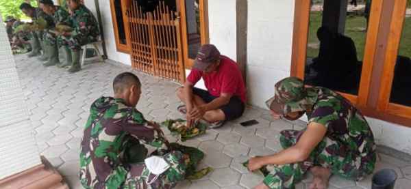 Makan bersama setelah bekerja ini menjadi momen bagi Anggota TNI dengan masyarakat sekitar dan para pekerja lebih akrab. Karena biasanya untuk melepas lelah mereka bercanda bersama. (Pendim 0813)