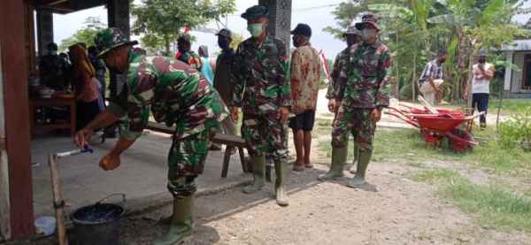 Mereka melakukan antrian bersama setelah mengerjakan sasaran program di Desa Jatimulyo. Sementara karena masih pandemi Covid-19 sehingga harus tetap menerapkan protokol kesehatan. (Pendim 0813)