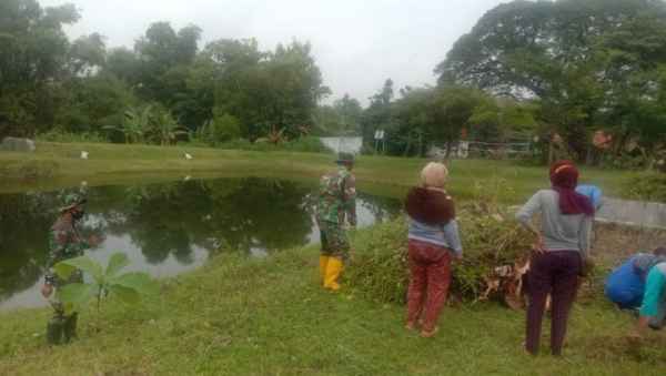 Pasi Ter Kodim 0813/Bojonegoro Kapten Inf Surahmat mengetahui hal tersebut sebelumnya kemudian memerintahkan tim satgas TMMD untuk membersihkan embung.