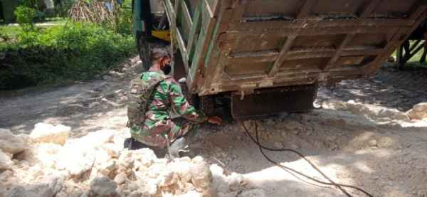 Sebelumnya, Kopda Anang anggota Satgas TMMD 110 Kodim 0813/Bojonegoro ini berada di lokasi pengerjaan jalan, mengarahkan truck pengangkut Material, Namun di tengah jalan truck terhenti karena AS nya putus.