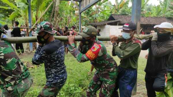 Kali ini Anggota Satgas TNI Manunggal Membangun Desa (TMMD) ikut pemindahan rumah di Desa Ngrancang, Rabu (10/03/2021).