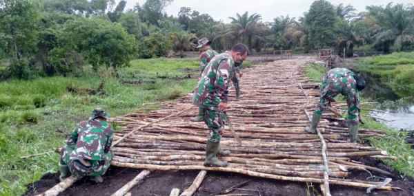 JAMBI- Dan SSK, Kapten Inf Rilman bersama warga Desa Sungaiterap, bekerjasama membuka tali pres untuk dipasangkan galar di lahan gambut dalam program TMMD ke 110 Kodim 0415/Batanghari, Senin (15/3/2021).