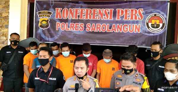 SAROLANGUN – Satresnarkoba Polres Sarolangun berhasil mengamankan tujuh orang diduga tersangka dalam peredaran gelap narkotika jenis sabu dan ekstasi. Kepala Kepolisian Resort Sarolangun, AKBP Sugeng Wahyudiono mengungkapkan ketujuh orang itu diamankan dalam operasi antik narkoba yang digelar pada tanggal 5 Februari hingga 16 Maret 2021.