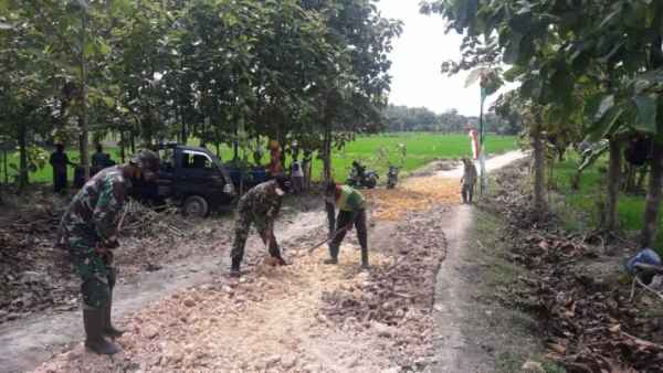 Lewat program itu, terjalin kemanunggalan antara TNI dengan rakyat. Sebab, dalam proyek itu mereka bahu-membahu mengerjakan perbaikan jalan, Kamis (11/3/2021).
