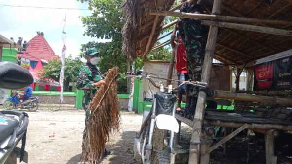 Sertu Jufri mengatakan, mengingat sekarang adalah musim penghujan, kami para prajurit bekerja sama dengan warga setempat melakukan renovasi atap pos ronda agar ketika hujan turun dapat digunakan untuk berteduh, Kamis (11/3/2021).