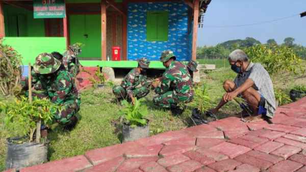 BOJONEGORO – Satgas TMMD Ke-110 Kodim 0813/Bojonegoro melakukan bersih – bersih sekitar Posko Pemberlakuan Pembatasan Kegiatan Masyarakat (PPKM) Berbasis Mikro Desa Ngrancang Kecamatan Tambakrejo Kabupaten Bojonegoro.