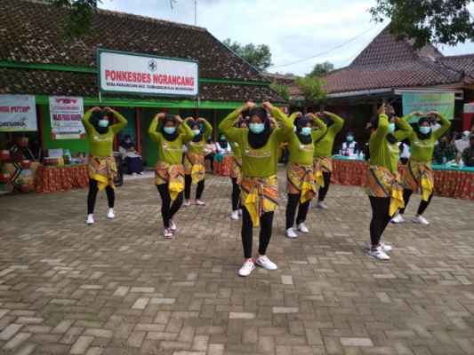 Bojonegoro – Pelaksanaan senam akupresur Asman (Asuhan Mandiri) toga (tanaman obat keluarga) ditampilkan di hadapan para tim medis Puskesmas Kecamatan Tambakrejo dan juga tim Satgas TMMD ke-110 di poskesdes (Pos Kesehatan Desa) Ngerancang, Kecamatan Tambakrejo, Kabupaten Bojonegoro, Minggu (14/3/2021).