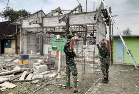 BOJONEGORO – Pengerjaan gedung sekolah sebagai bagian dari kegiatan TMMD ke-110 Bojonegoro yang berkolaborasi dengan Pemkab setempat telah mencapai hampir 50%. Bersama warga, Satgas TMMD melakukan pekerjaan secara bersama-sama.