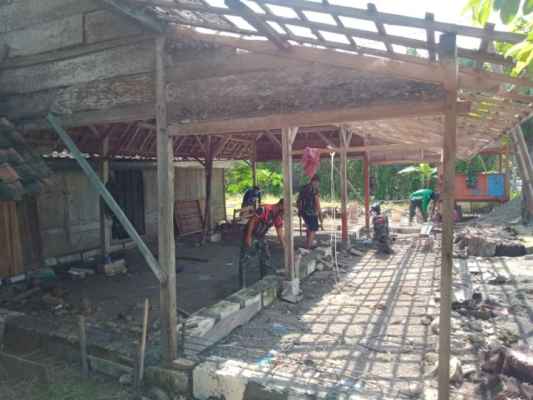 “Anggota TMMD membantu perbaikan rumah bapak Kusnadi warga Desa Ngrancang yang rumahnya bocor terus akibat hujan yang lebat,” ujar Koptu Mufti, Selasa (16/3/2021)