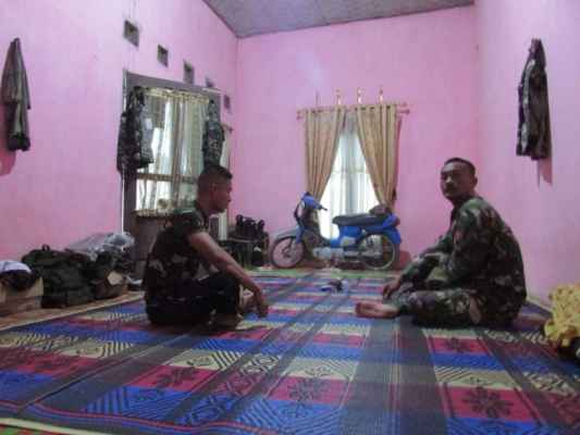 JAMBI- Hanya beralasan tikar, Satgas TMMD ke 110 Kodim 0415/Batanghari tidur di salah satu rumah orang tua asuh, yakni Zuhdi yang merupakan warga RT 01 Desa Sungaiterap.