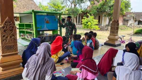 Bojonegoro – Anggota satgas TMMD ke-110 Kodim 813/Bojonegoro turut membantu dalam kegiatan belajar anak-anak Desa Jatimulyo, Kecamatan Tambakrejo, Kabupaten Bojonegoro.