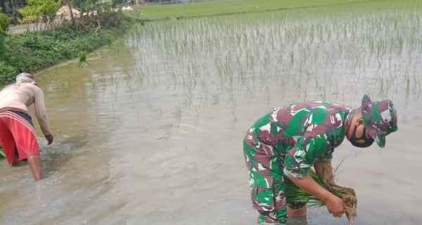 “Saya dan warga membantu untuk tanam padi di lahan pertanian warga,” kata Serda Eko,Selasa(16/03/2021).