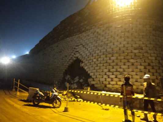 Pantauan awak media, dinding Tol Joor Alam Sutera – Bandara Soetta yang berbentuk persegi panjang itu runtuh dekit demi sedikit. Selain itu, tanah yang ada di bagian dalam juga terlihat terus berjatuhan (longsor.red).