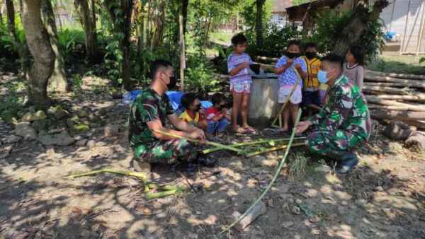 Serda Dwi Permono Sudi Mengatakan, Sebagai Satgas TMMD tugasnya tidak hanya mengerjakan pembangunan fisik saja, namun juga menjaga hubungan sosial kepada warga dan anak-anak.