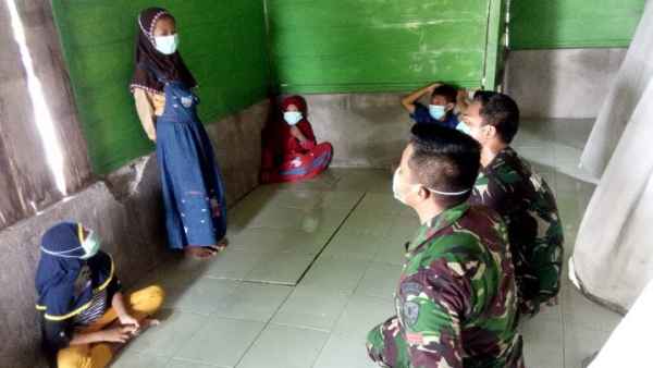 “Saya sedang mengajari anak anak untuk menghafal lagu kebangsaan Indonesia,” ujar Serda Riski,Rabu(17/03/2021).