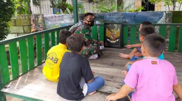 “Kita sedang bersama anak-anak, kita ajak mereka tanya jawab seputar Lambang Negara kita,” tutur Serda Lajahidin, Kamis (18/3/2021).