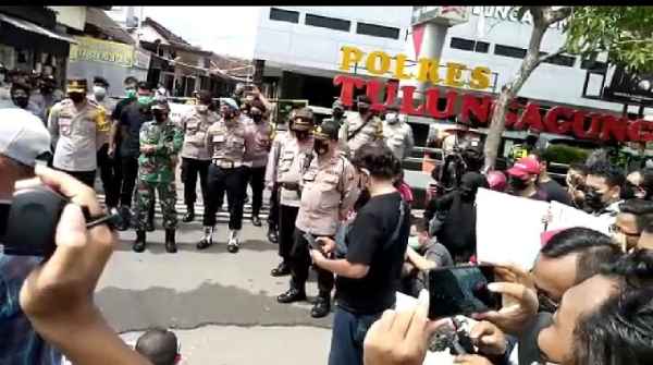 TULUNGAGUNG – Puluhan Jurnalis asal Kabupaten Tulungagung menggelar aksi solidaritas di mulai depan Gedung DPRD Tulungagung sebagai titik kumpul dan berjalan menuju Polres Tulungagung, aksi dari berbagai media massa mengecam aksi kekerasan yang dilakukan aparat kepolisian terhadap jurnalis, Rabu (31/03/2021).