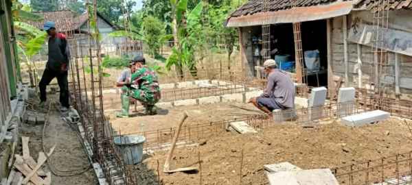 Bojonegoro – Melalui program Aladin (Atap, Dinding, dan Lantai), Satgas TMMD ke-110 Kodim 0813/Bojonegoro bersama warga merenovasi rumah Ibu Turminalingsih yang merupakan sasaran fisik program RTLH (Rumah Tidak Layak Huni) di Desa Jatimulyo, Kecamatan Tambakrejo, Kabupaten Bojonegoro.