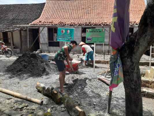 “Saya sedang melakukan pengadukan semen di rumah ibu Sunarti,” kata Serda Samsuri, Jum’at (19/10/2021).