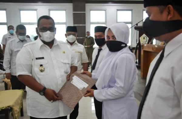 Wabup Aceh Utara Fauzi Yusuf serahkan SK pengangkatan kepada salah seorang penyuluh PPPK
