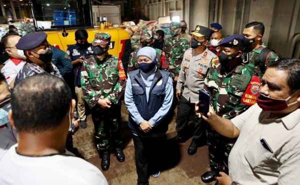 SURABAYA – Forkopimda Jawa Timur Gubernur Jatim Khofifah Indar Parawansa, Pangdam V Brawijaya Mayjen TNI Suharyanto, Pangkoarmada II Laksda TNI I.N.G Sudihartawan bersama Kapolda Jawa Timur Irjen Pol Dr. Nico Afinta, didampingi Pejabat Utama (PJU) Polda Jatim serta Kabid Humas Polda Jatim Kombes Pol Gatot Repli Handoko, Kamis (15/4/2021) pagi, menyerahkan bantuan bahan kontak dan pelepasan KRI Tanjung Kambani-971, untuk penanggulangan Bencana Alam di Flores Timur Provinsi NTT.
